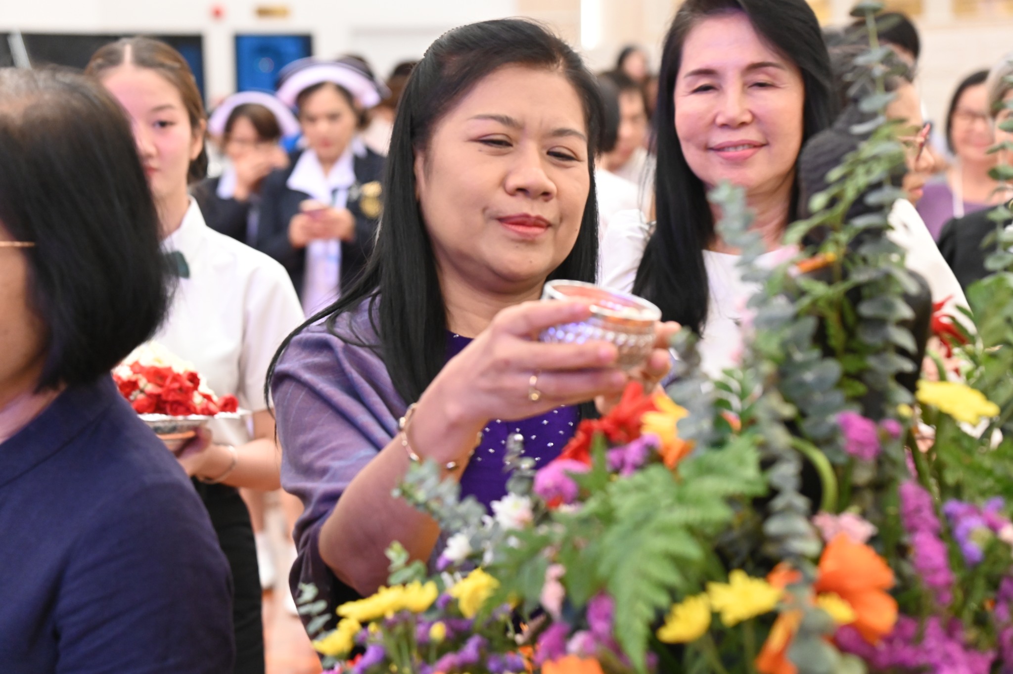 เริ่มกิจกรรมด้วยตั้งขบวนแห่กลองยาว ณ อาคารการุณยสภา และ รดน้ำขอพร คณะผู้บริหารคณะพยาบาลศาสตร์เกื้อการุณย์ และ ตัวแทนผู้อาวุโส ประจำภาควิชา และฝ่ายต่างๆ ของ คณะพยาศาสตร์เกื้อการุณย์