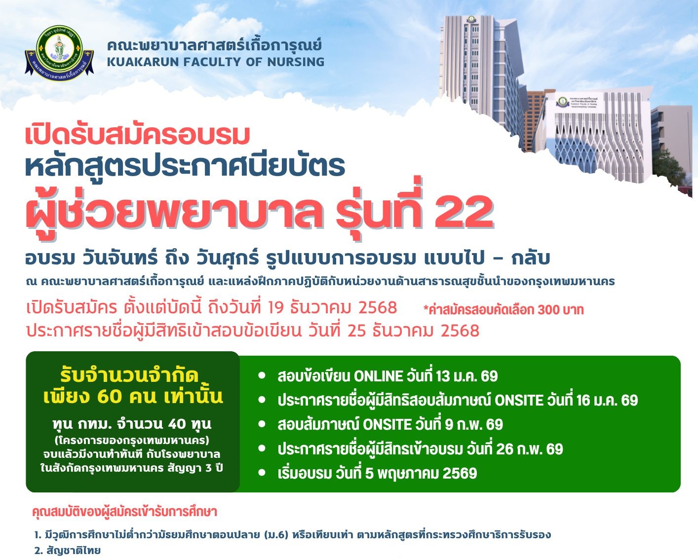 KFN | ประกาศรับสมัครและคัดเลือกบุคคลเข้าศึกษา ประจำปีการศึกษา 2568 รอบที่1