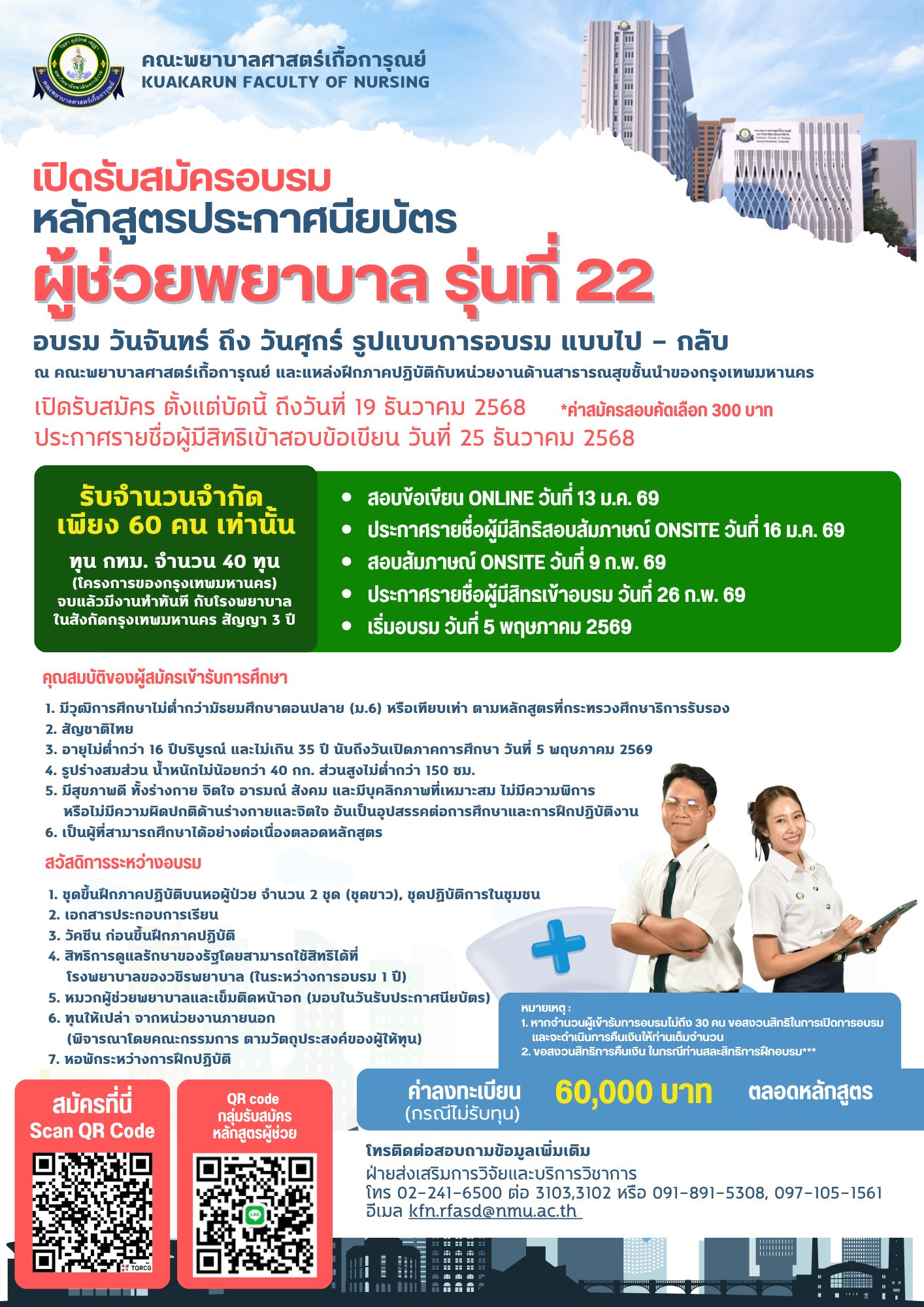 KFN | ประชาสัมพันธ์เปิดรับสมัคร หลักสูตรประกาศนียบัตรผู้ช่วยพยาบาล รุ่นที่ 22