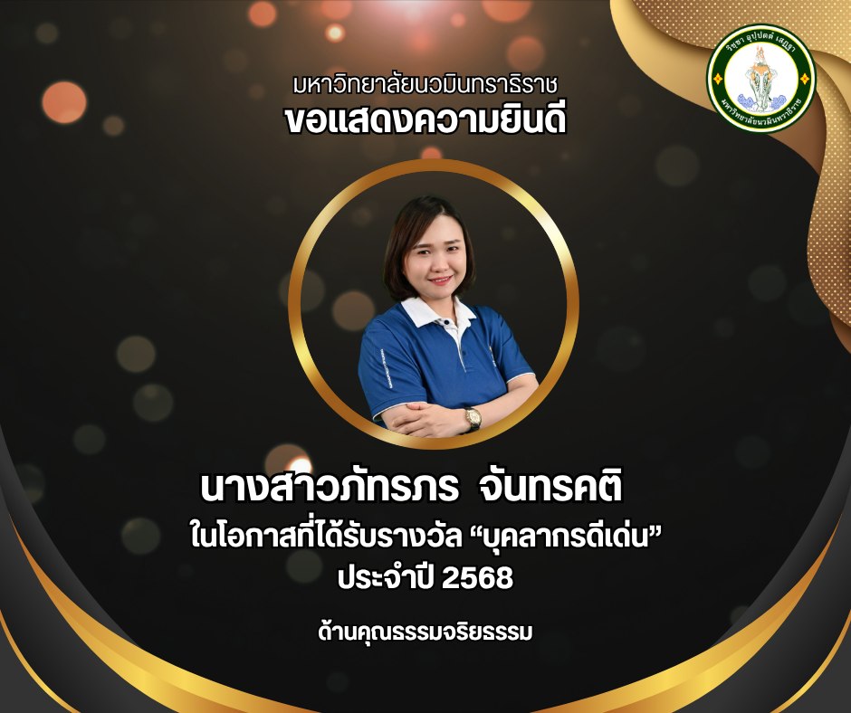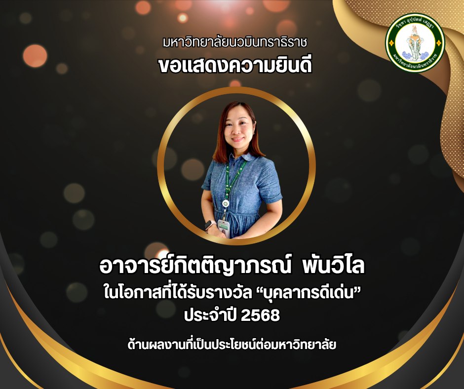 ที่ได้รับคัดเลือก "บุคลากรดีเด่น ประจำปี 2568" ของมหาวิทยาลัย นวมินทราธิราช โดยในปีนี้ คณะพยาบาลศาสตร์เกื้อการุณย์ มหาวิทยาลัยนวมินทราธิราช มีผู้ได้รับการคัดเลือกเป็นบุคลากรดีเด่น จำนวนทั้งสิ้น 12 ราย ซึ่งถือเป็นแบบอย่างที่ดีในการปฏิบัติงานและเป็นพลังสำคัญในการขับเคลื่อนมหาวิทยาลัยฯ และ คณะ ฯ ให้ก้าวหน้าต่อไป รายละเอียดและกำหนดการมอบโล่ประกาศเกียรติคุณ ในงานครบรอบ 15 ปี สถาปนามหาวิทยาลัยนวมินทราธิราช ในวันพฤหัสบดีที่ 13 พฤศจิกายน 2568 ณ สำนักงานอธิการบดี มหาวิทยาลัยนวมินทราธิราช